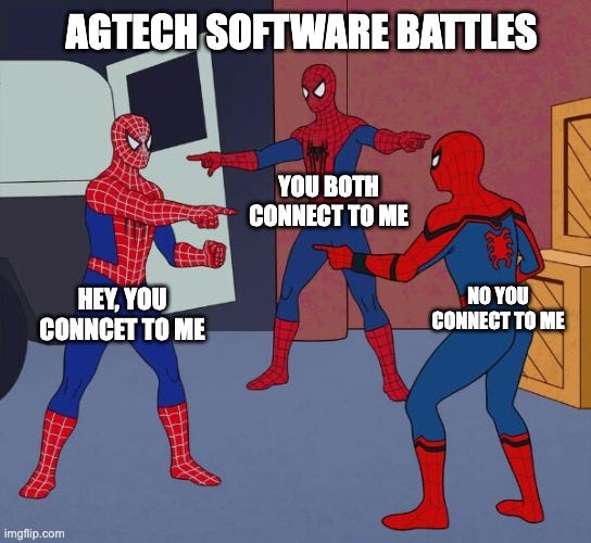 To call it out in the simplest terms of why all these connections are a somewhat lie is that we secretly don’t want to connect to anything and we want to control what we have control of. That is how Ag has always been. Scared of either competition, losing control, or the unknown.